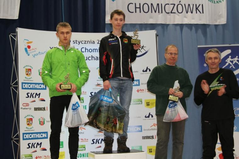 Podczas rozgrywanego w dniu dzisiejszym XXXI Biegu Chomiczówki bardzo dobrze wypadli nasi zawodnicy! Mimo prawdziwie zimowych warunków udało nam się osiągnąć czołowe miejsca zarówno w kategorii OPEN, jak i w kategoriach wiekowych. W mocno obsadzonym biegu na dystansie 15km najlepiej wypadł Piotrek Parfianowicz, który z fantastycznym czasem 49'17 ukończył bieg na 5. miejscu w OPEN (3. miejsce w kategorii wiekowej). Świetnie pobiegł również Krzysiek Wołowczyk, który ukończył bieg na 12. miejscu i tym samym zwyciężył w swojej kategorii wiekowej. Dobrze biegali także weterani - Maciek Grabowski skończył na 28. miejscu z czasem 55'19. W Biegu o Puchar Bielan na dystansie 5km wystartował Michał Wołowczyk, który zajął 7. miejsce w swojej kategorii wiekowej z czasem 19'07. Gratulujemy wyników!