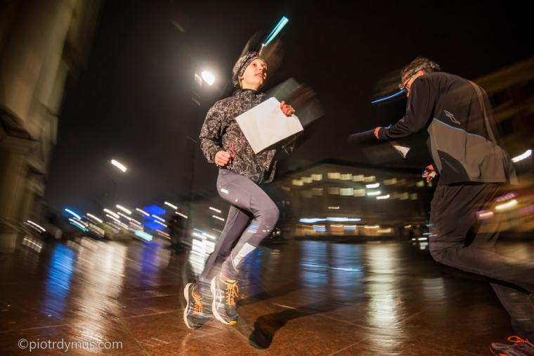 Znowu padało - tym razem nie był to śnieg, a delikatny deszcz, który powitał uczestników 4. etapu Warszawa Nocą. Wbrew mało zachęcającej pogodzie frekwencja okazała się rekordowa - przyszło Was 210 osób! Najwięcej, bo aż 86 zawodników wystartowało na trasie Zuchwałych, gdzie zwyciężył 13-letni Michał Pierzchała, pokonując o niecałe 30 sekund Piotra Polowczyka. 3. miejsce ze stratą ponad dwóch minut zajął Kamil Lesisz. Wśród Początkujących najlepiej wypadł Jan Wiśniewski, który o niecałą minutę pokonał Adama Parfianowicza, natomiast Aleksandra Kopeć, która uplasowała się na 3. pozycji ukończyła bieg ze startą ponad siedmiu minut. Na trasie Dzieci całe podium obstawił UKS Kusy Warszawa w składzie - Julia Głowacz, Igor Byczkowski i Zuzanna Dolińska. U Profesjonalistów dość niespodziewanie zwyciężył inny przedstawiciel UKS Kusy - Karol Galicz, który o 15 sekund pokonał Krzysztofa Wołowczyka i o 32 sekundy Kamila Anca, czym zapewnił sobie zwycięstwo w klasyfikacji generalnej. Faworyci, czyli Piotrek Łobodziński i Parfianowicz zaliczyli popularnego NKLa podbijając błędny ostatni PK - trzeba być czujnym do samego końca.