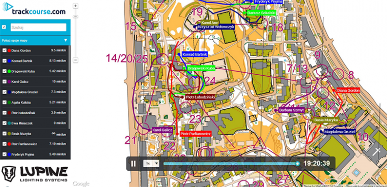 Bardzo ciekawa rywalizacja toczyła się również na trasie Profesjonalistów. Dzięki GPS-trackingowi mogliśmy na żywo śledzić poczynania 15 wybranych zawodników. Zapraszamy do obejrzenia powtórki z transmisji, dzięki czemu dobrze widać, jak biegali poszczególni zawodnicy, a nawet możemy podejrzeć gdzie popełniali błędy, bo nawet najlepszym dziś kilka razy się to przytrafiło. Ostatecznie zwyciężył Piotr Parfianowicz, wygrywając o niecałą minutę z Piotrem Łobodzińskim. 3. miejsce przypadło Kubie Drągowskiemu.