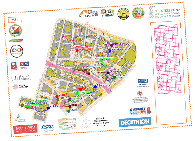 Bieg sztafetowy odbył się w ternie parkowym i tylko krótkie chwile zawodnicy spędzili w terenie zabudowanym. W niedzielę mapa była typowo miejska. Nasz Klubowy kolega Piotr Parfianowicz, zawodnik kategorii M21 czyli najbardziej wymagającej kategorii męskiej zdobył złoto. Na podium, również jako złota medalistka stanęła Justyna Kostrzewska w kategorii K20 i tu Piotr Parfianowicz został nagrodzony złotym medalem jako trener.