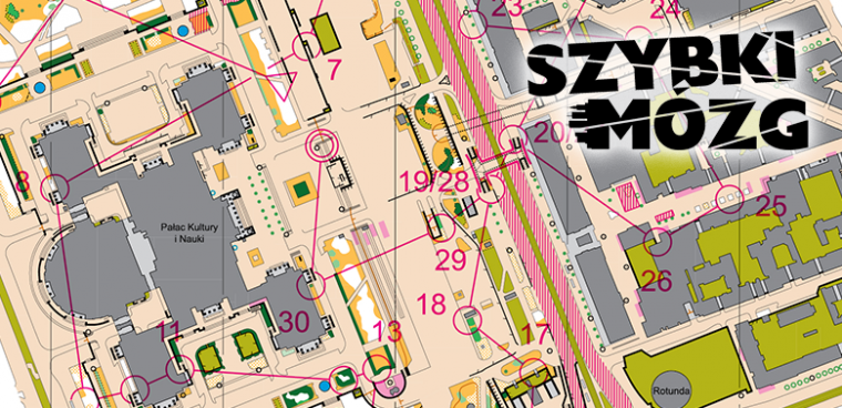 Ponad 300 zawodników wzięło dziś udział w 2. etapie Szybkiego Mózgu rozgrywanego w ramach akcji Cała Polska biega z mapą oraz Światowego Dnia Orienteeringu. Bieg rozegrany został w samym centrum Warszawy, wokół Pałacu Kultury i Nauki, a także po drugiej stronie ul. Marszałkowskiej, gdzie przebiegały najdłuższe trasy. Mimo nie najlepszej pogody frekwencja dopisała, a wszyscy dobiegli do mety zadowoleni.